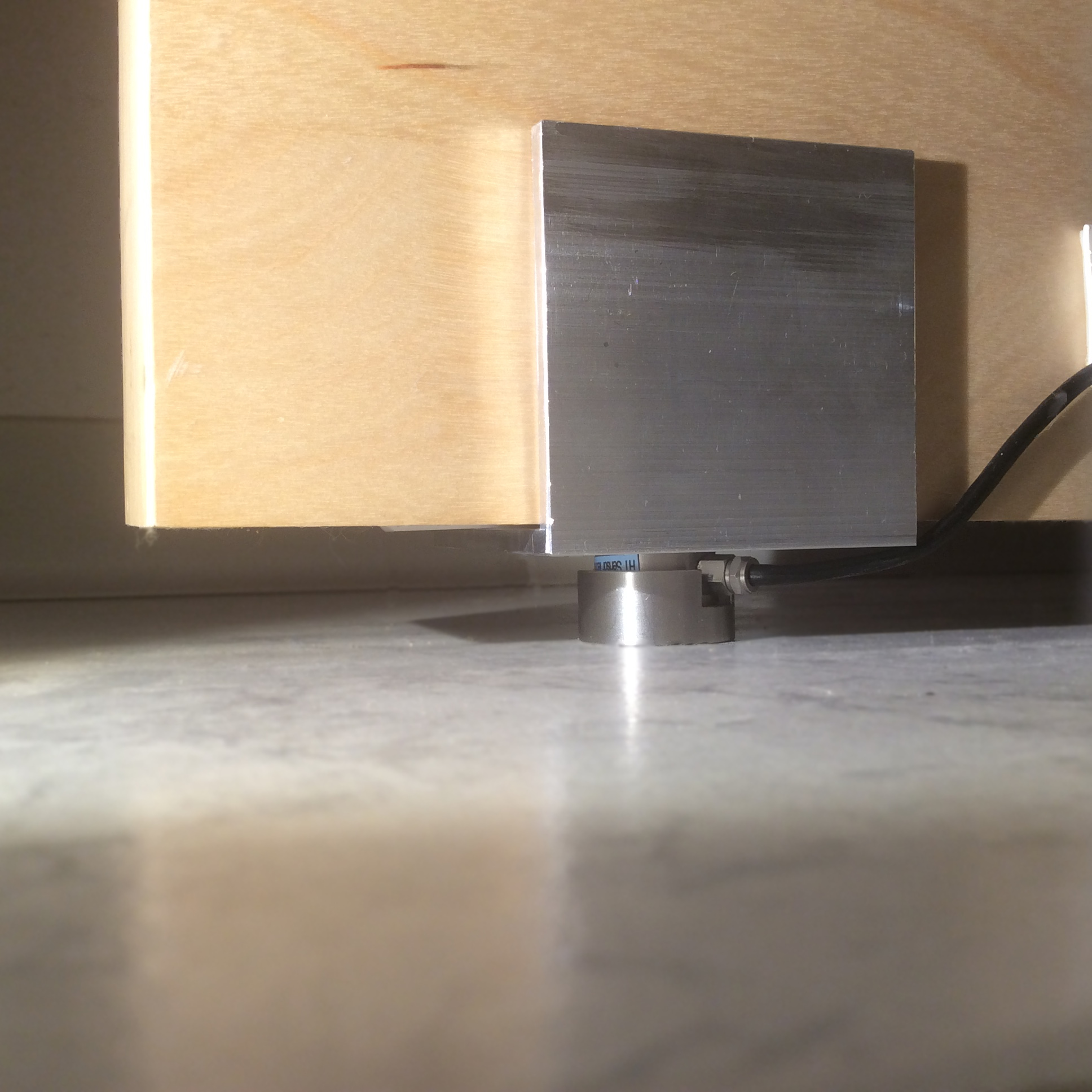The sensor module itself is fastened onto the underside of the U-shaped profile. The force is measured by the stub (diameter 2.5mm), to avoid damage to the fooring it sits in the cup below.