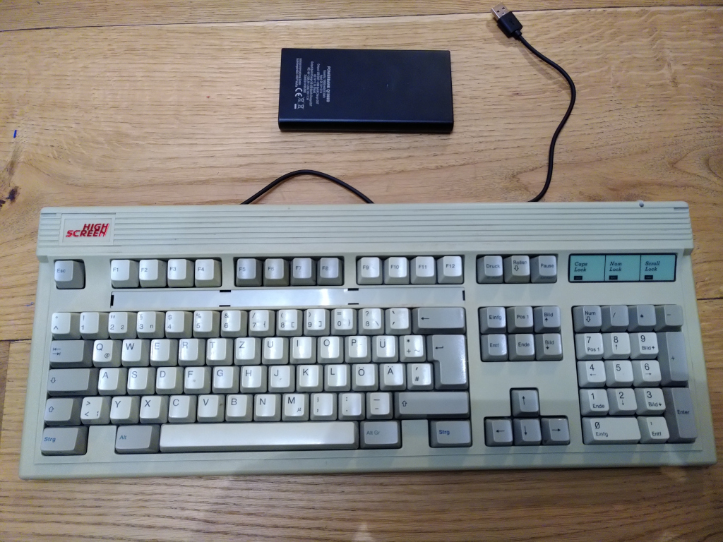 An old keyboard (about 1988 vintage) gives the project its enclosure and "user-interface". An Arduino Nano is hooked up to the keyboards original controller and simulates the host PC and receives the keyboard inputs from the keyboard.